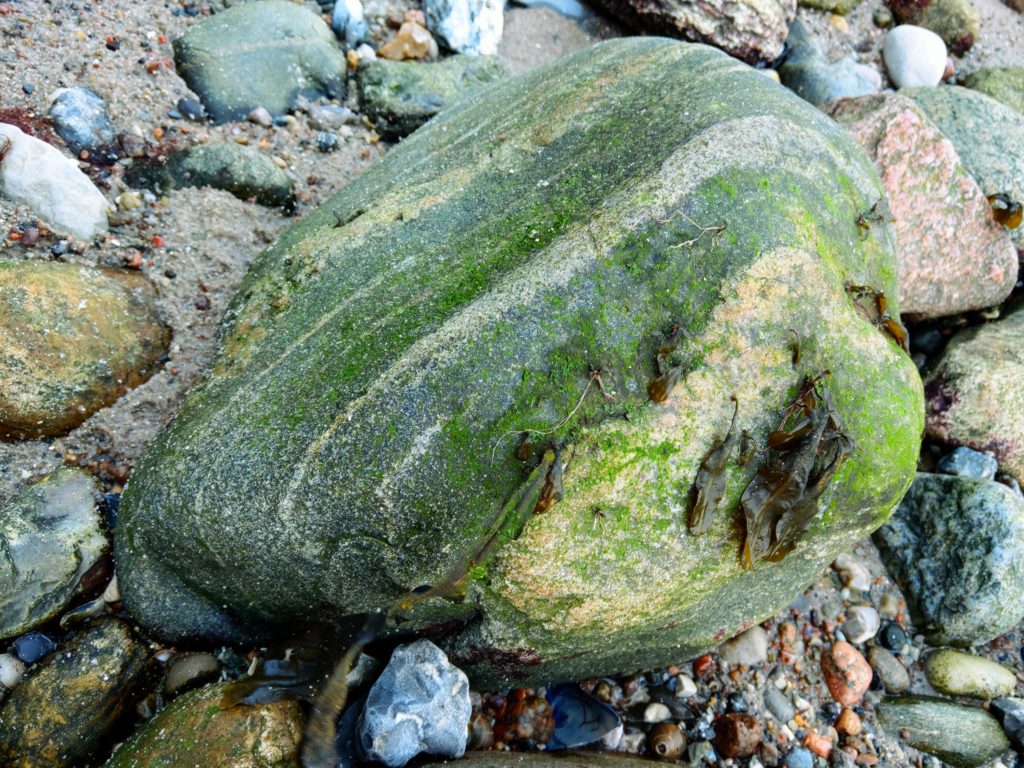Geduldige und zeitlose Zeugen Jahretausendlanger Geschichte. Stur und träge liegen sie am Strand. In bunten Farben und Musterung. Herausgerissen und -gespült aus einem sandigen Küstenstreifen und geformt von Wind und Wetter.