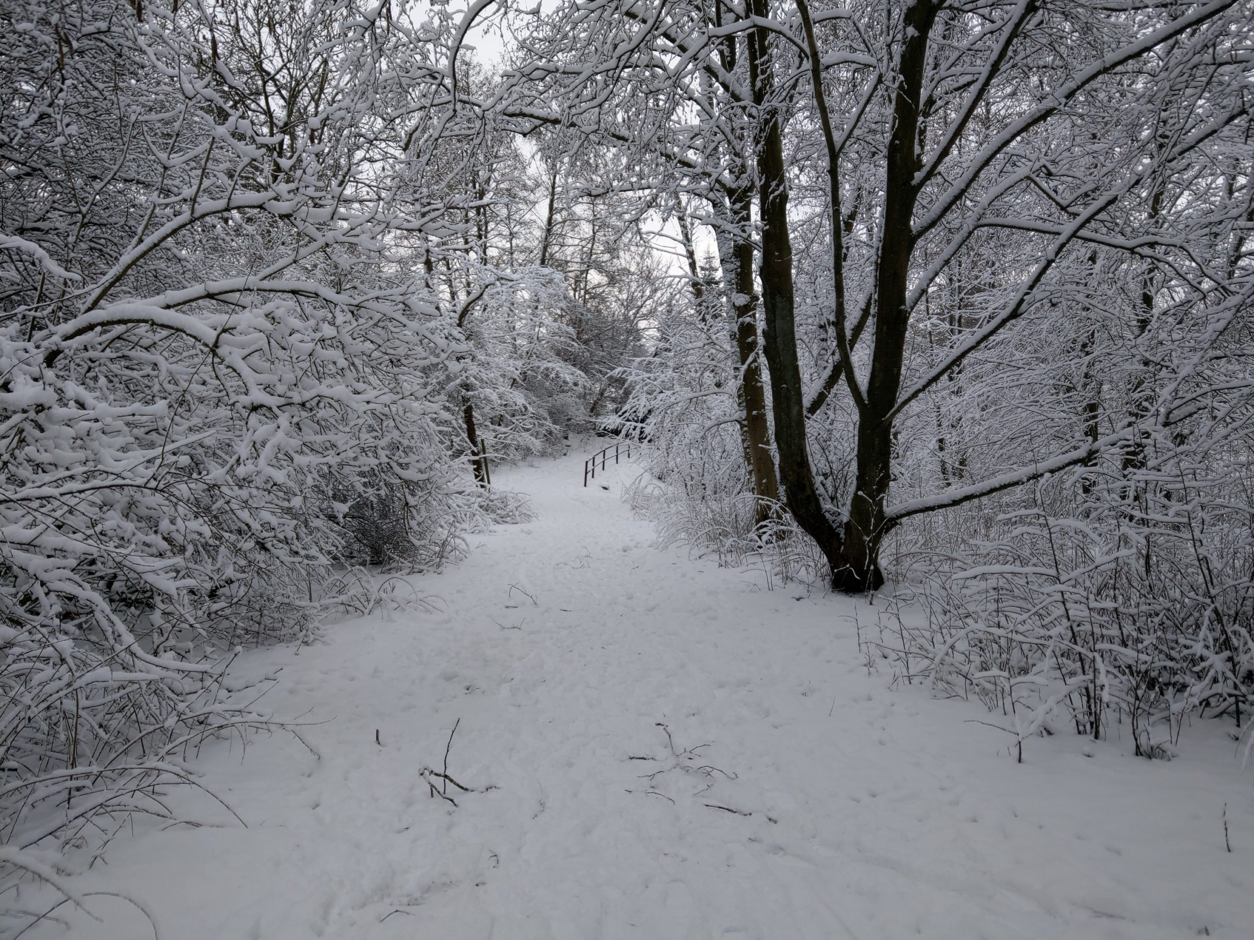 Drei Minuten zu Fuß und ich stehe in einem Winter-Wunderland. Nahezu unberührt liegt hier eine Schneelandschaft vor mir, die mich inne halten lässt.