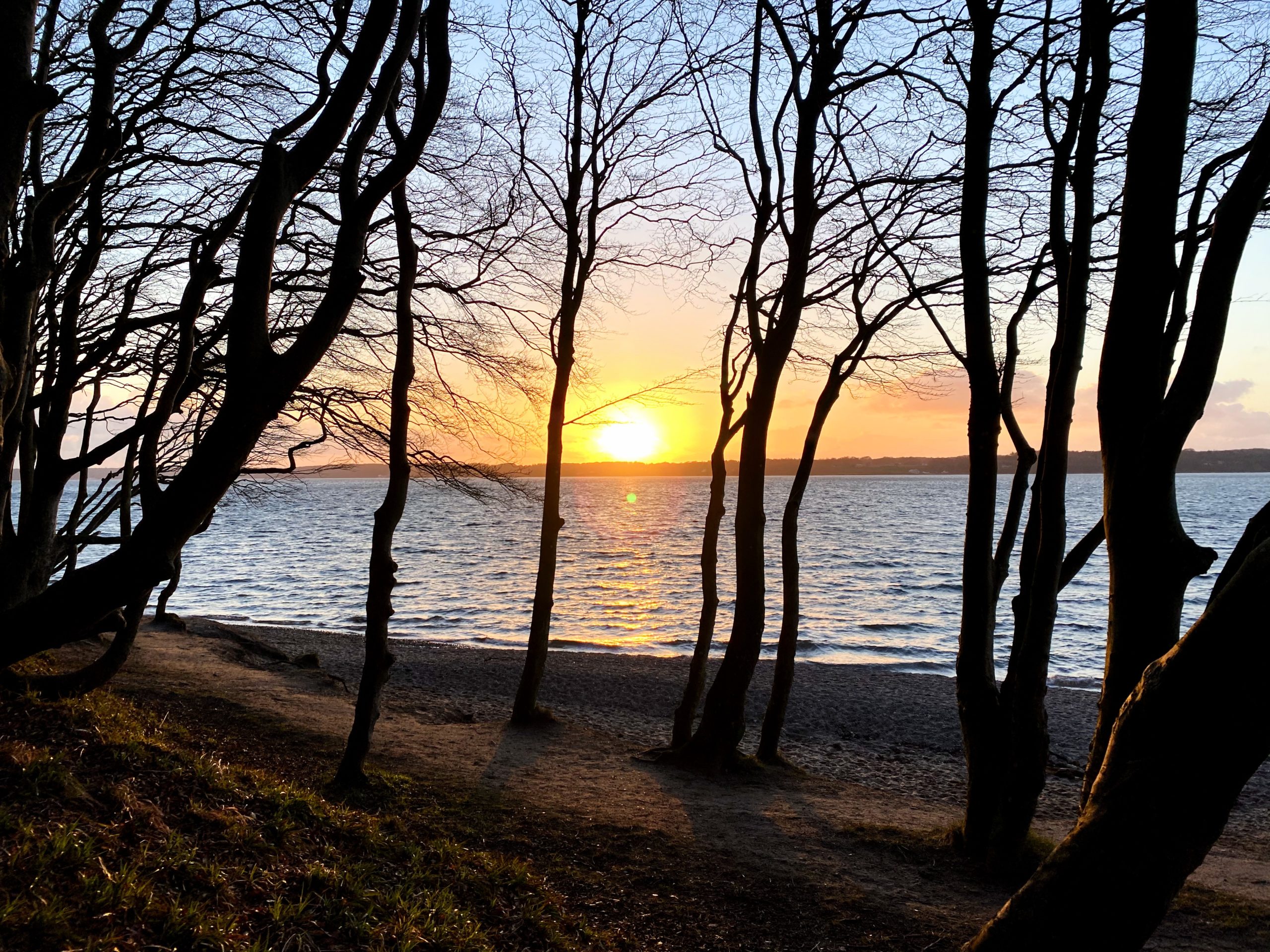 Um Ufer geht der Waldhang über in einen schmalen, jedoch steinigen Sandstrand. Das Wasser der Förde rollt hier unaufhörlich auf’s Land zu. Beständiges Meeresrauschen und das anbranden des Wassers auf dem steinigen Grund wirken beruhigend