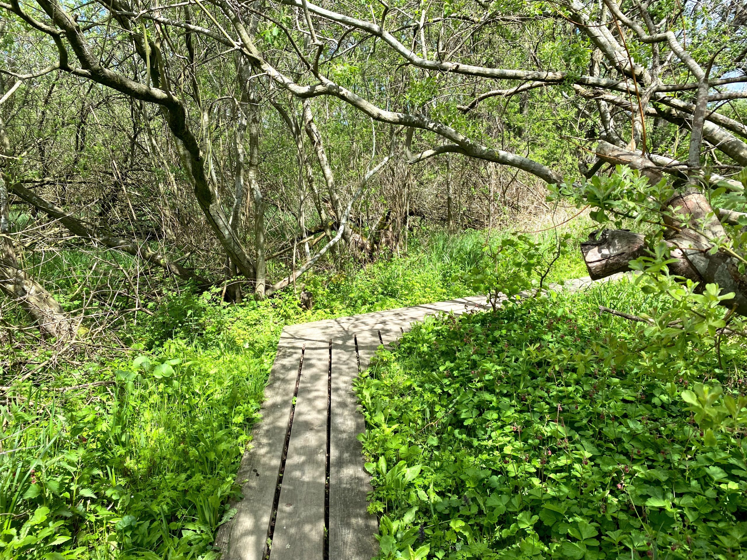 Nach dem Schlamm kommt der Bohlenweg. Holz und Matsch wechseln sich ab.