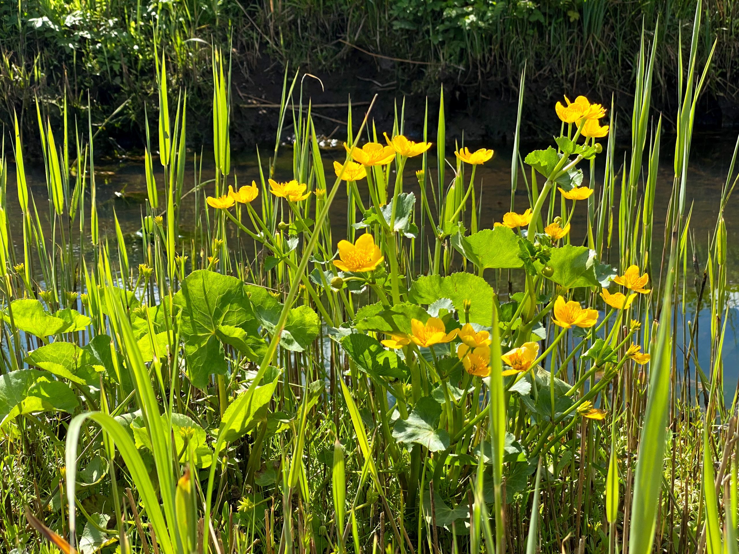 An Bächen entlang folge ich dem Weg. Meine neue App sagt mir dabei, mit welcher Flora ich es gerade zu tun habe. Wahnsinn wie viele unterschiedliche Pflanzen es gibt. Sumpfdotterblumen wachsen hier am Bach und bilden mit ihrem kräftigen Gelb einen schönen Kontrast zum frischen Gras.