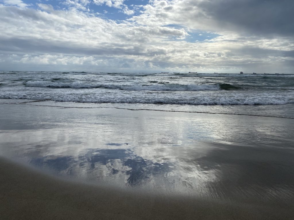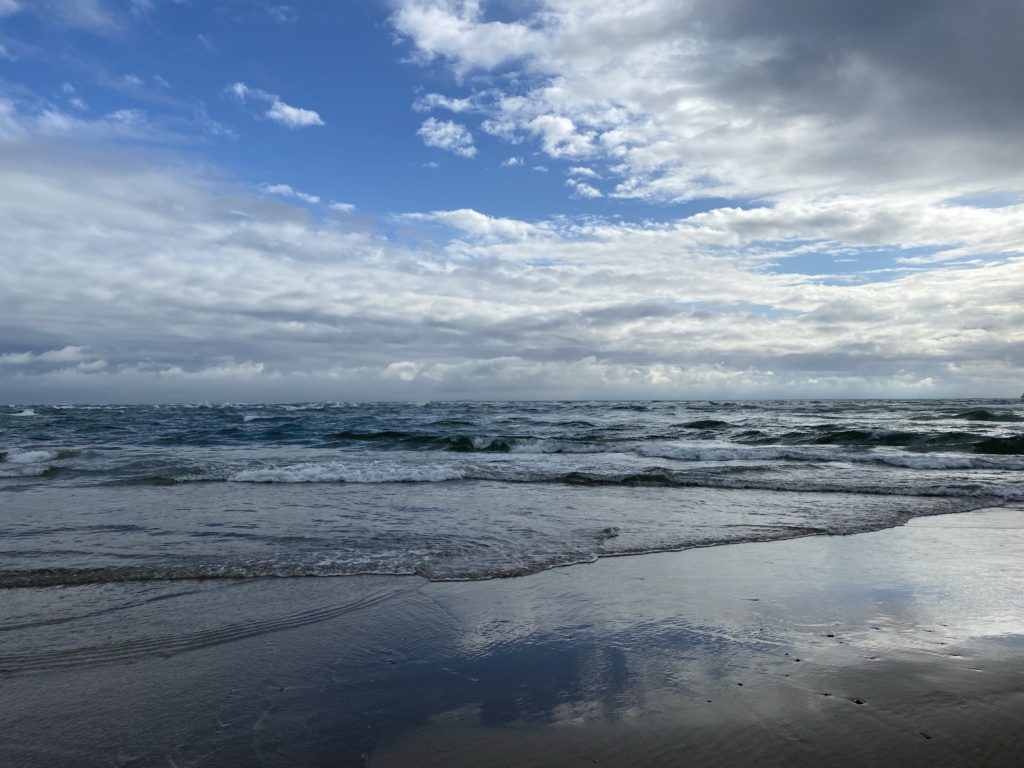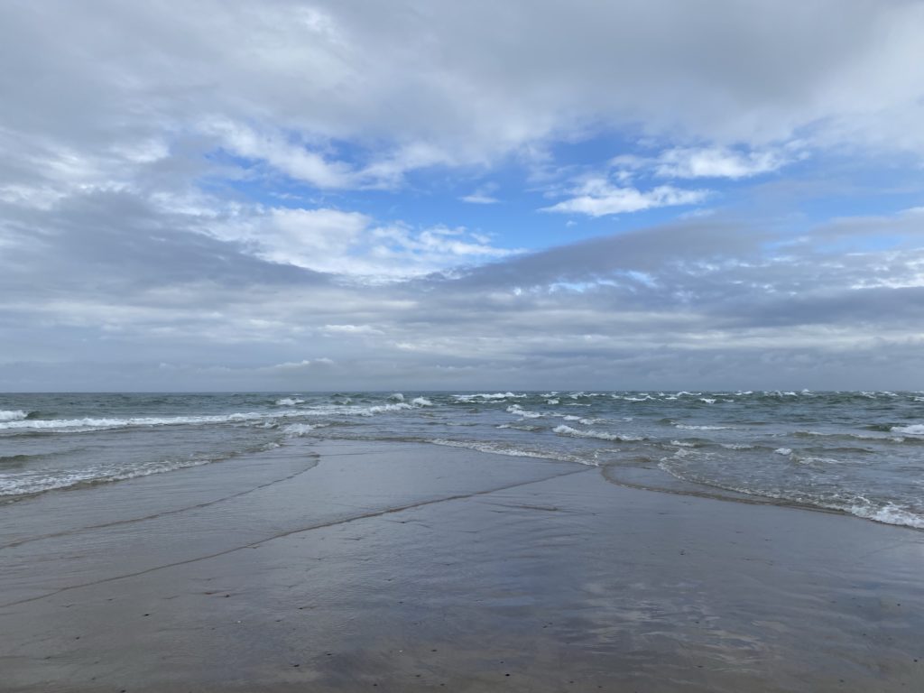 Etwas nördlich indes branden die Wellen des Kattegats in ihrer ganzen Schönheit an den flachen Sandstrand. Die Feuchte hinterlässt Spiegelungen, deren Bilder wieder und wieder im Sand versickern. Ich könnte ewig zusehen.