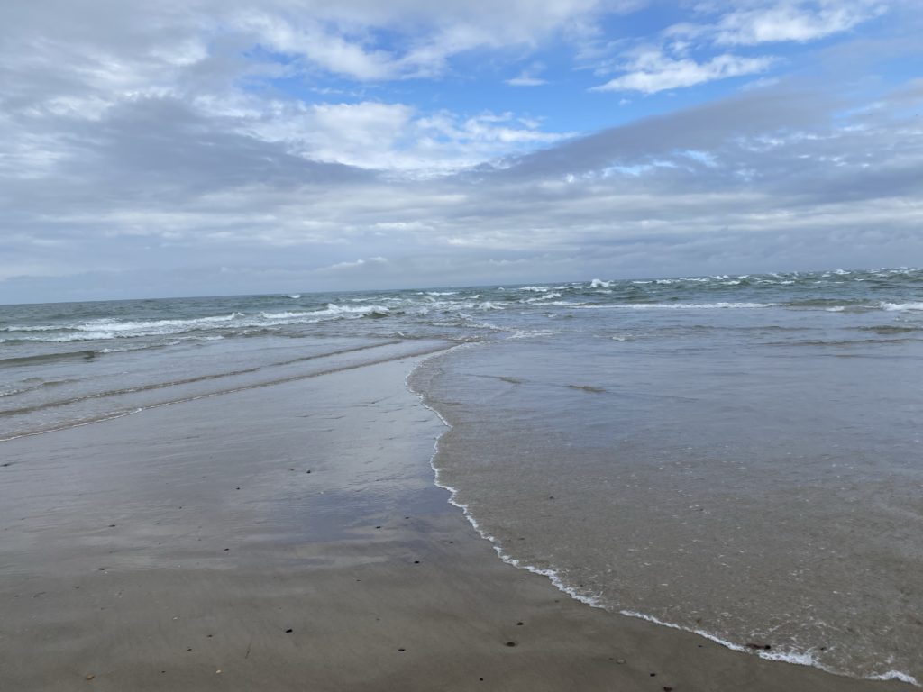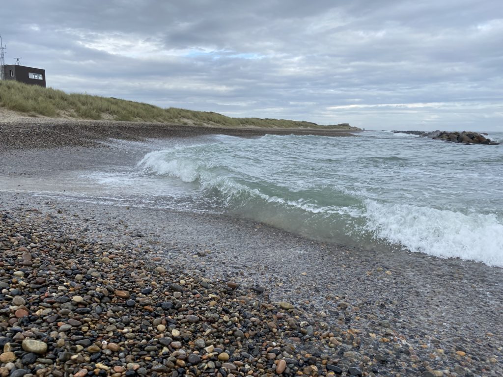 Die Nordseeseite liegt ruhiger da. Der aus südost kommende Wind lässt das Skagerak beinahe friedlich da liegen. Nur im Flachwasser des Ufers bricht sich das Wasser in Richtung Strand.