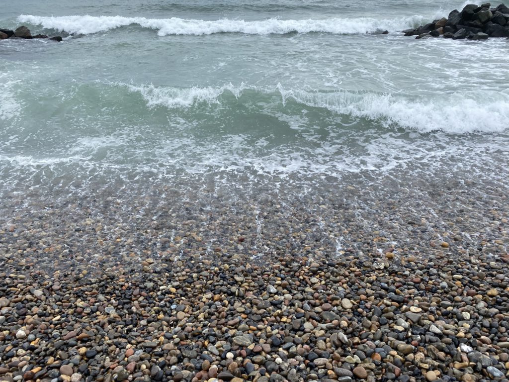 Auch wenn die kleinen steinigen Buchten künstlich angebaut sind, haben sie ihren Reiz. Das Geräusch des sich zurückziehenden Wassers unter ihnen klingt wunderschön. Immer wieder klirren sie aneinander und erzeugen ihre eigene und unverwechselbare Musik.